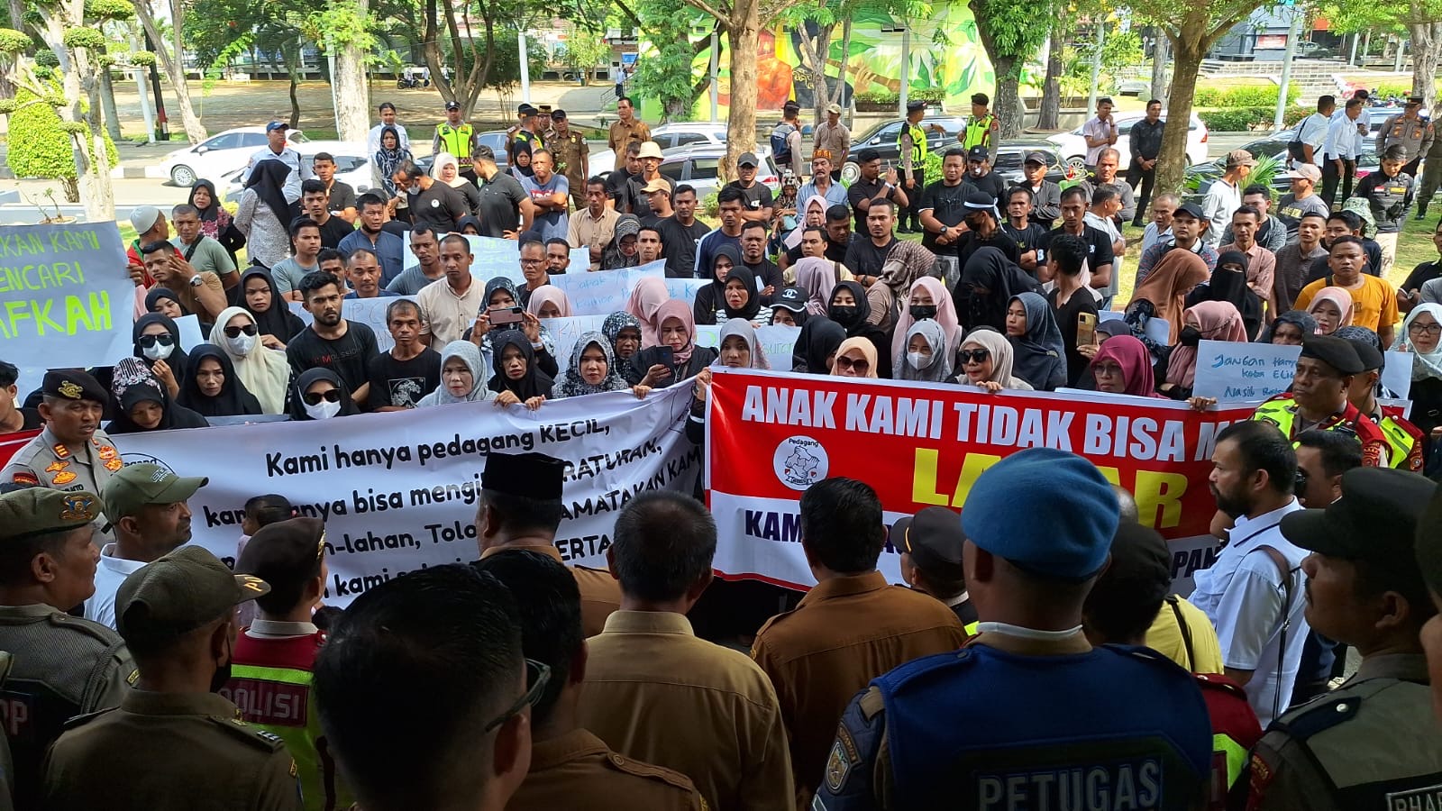 Banda Aceh – Ratusan pedagang kaki lima Chiek Pante kulu menggelar Aksi demo dihalaman kantor Walikota Banda Aceh, Senin 06 Mei 2024.