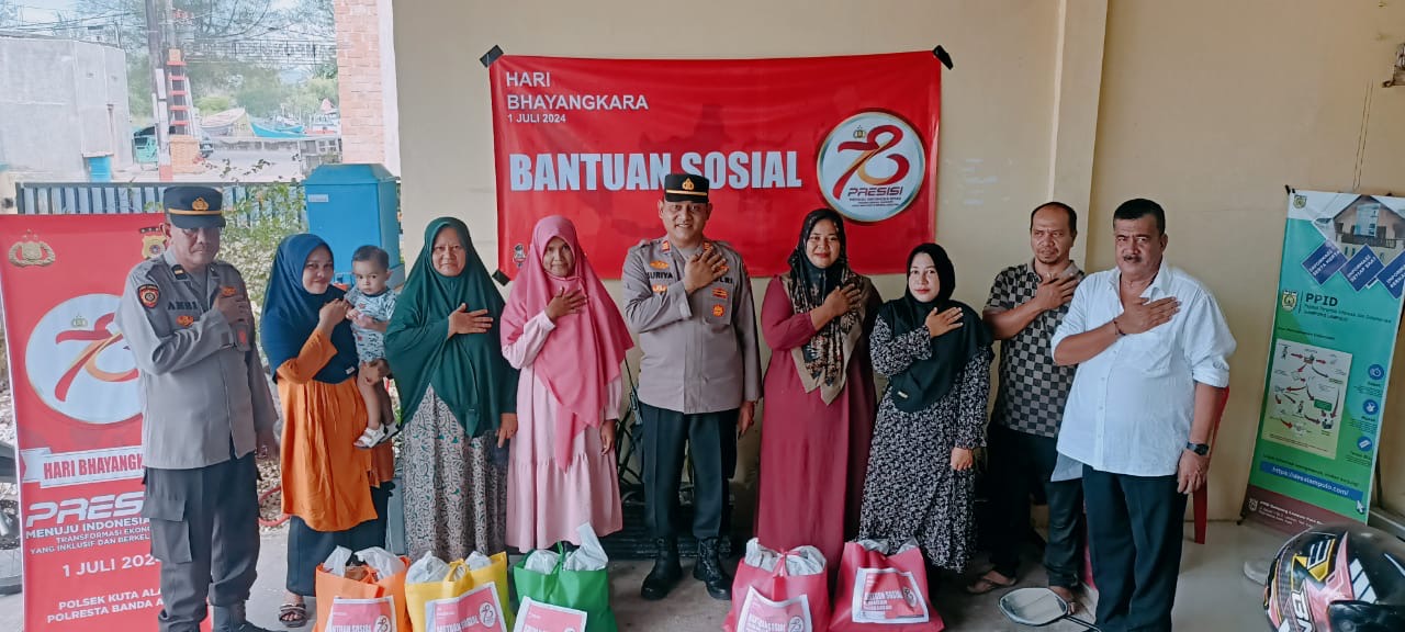 Banda Aceh – Kapolsek Kuta Alam bersama personil kembali menyerahkan Bansos kepada masyarakat kurang mampu dalam Hut Bhayangkara ke 78 tahun.Rabu 26 Juni 2024.