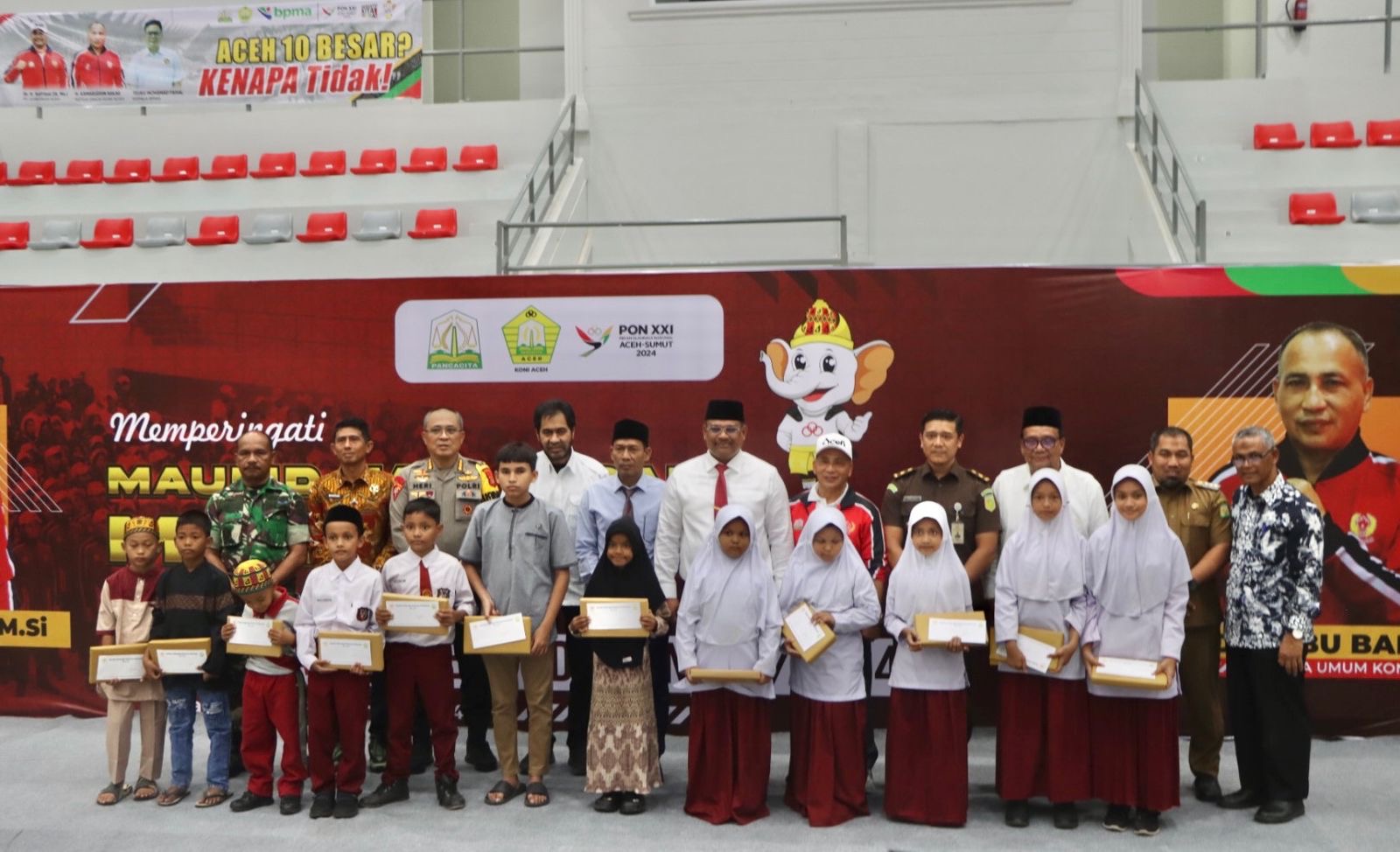 Banda Aceh – Mewakili Kapolda Aceh, Karo Ops Kombes Heri Heryandi menghadiri syukuran kontingen Aceh Pekan Olahraga Nasional (PON) XXI Aceh-Sumut yang dirangkai dengan peringatan Maulid Nabi Besar Muhammad SAW 1446 Hijriah, di GOR KONI Aceh, Kota Banda Aceh, Selasa, 24 September 2024.