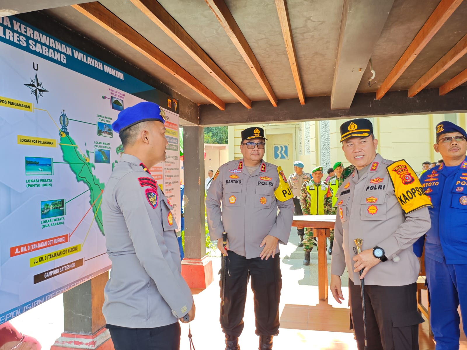 Sabang,Tubinnews.com | Kapolda Aceh Irjen Achmad Kartiko, didampingi Kapolres Sabang AKBP Erwan mengecek pos pelayanan Operasi Lilin Seulawah 2024 di Teupin Layeu Gampong Iboih, Kecamatan Sukamakmue, Kota Sabang, Jumat, 27 Desember 2024.