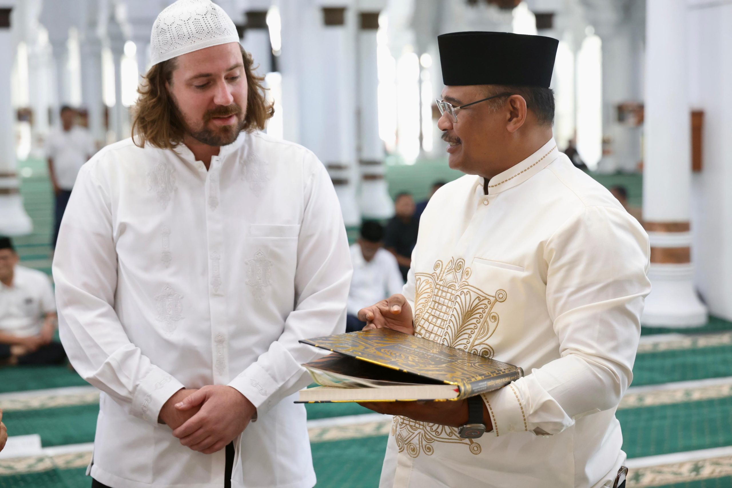 Banda Aceh, Tubinnews – Penjabat (Pj) Gubernur Aceh, Dr. H. Safrizal ZA, M.Si, menyaksikan prosesi pensyahadatan seorang warga negara Australia, William Robert Mackay (29), di Masjid Raya Baiturrahman, Banda Aceh, pada Jumat (31/1/2025). Setelah mengucapkan dua kalimat syahadat, pria asal Attadale, Australia, ini resmi memeluk Islam dan memilih nama baru, Muhammad Wildan.