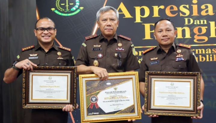MEDAN,TUBINNEWS.COM | Kejaksaan Agung Republik Indonesia memberikan apresiasi dan penghargaan Performa Reformasi Birokrasi Di Lingkungan Kejaksaan Republik Indonesia 2024 yang diserahkan langsung oleh Wakil Jaksa Agung Republik Indonesia Dr.Feri Wibisono didampingi Wakil MenteriPAN RB Komjen Pol ( Purn) Purwadi Arianto serta disaksikan oleh Ketua Komisi Kejaksaan RI Prof. Dr. Pujiyono Suwadi, SH, MH, Jaksa Agung Muda Pembinaan Dr. Bambang Sugeng Rukmono,SH, MH, dan Kepala Biro Perencanaan Tiyas Widiarto, SH, MH, Rabu (19/02/2025) di Gedung Utama lantai 11 Kejaksaan Agung RI Jakarta.
