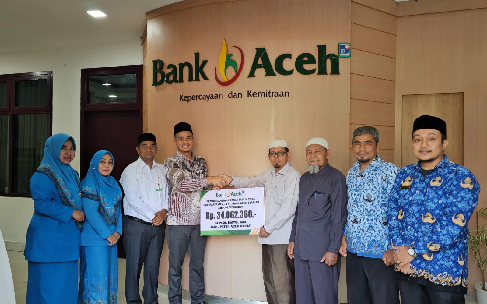 Bank Aceh Syariah Cabang Meulaboh Serahkan Zakat Ke Baitul Mal 34 Juta