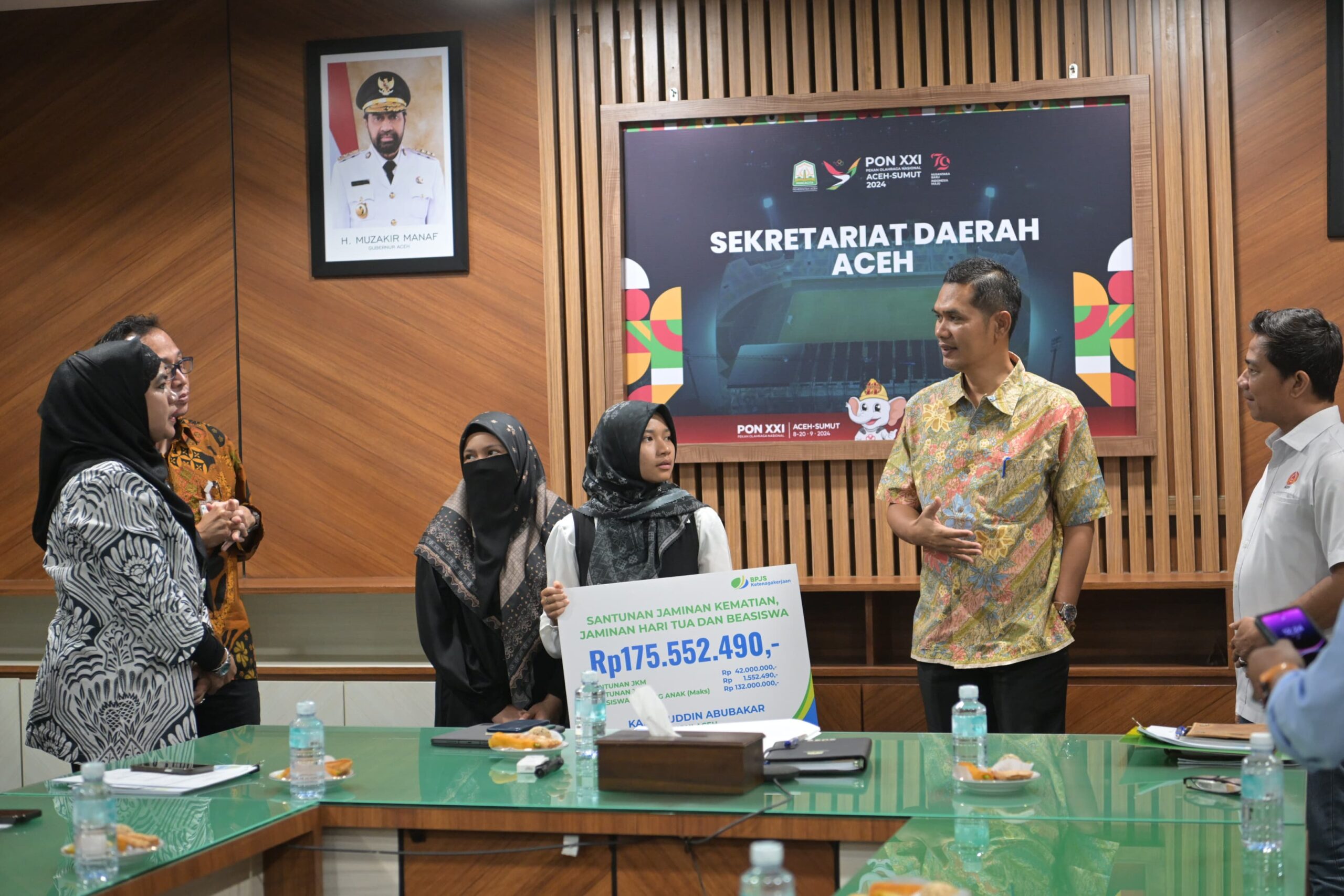 Hal tersebut disampaikan oleh M Nasir saat menerima kunjungan silaturrahmi Kepala BPJS Ketenagakerjaan Perwakilan Aceh, sekaligus penyerahan santunan dari lembaga tersebut kepada ahli waris Almarhum Ketua Umum Komite Olahraga Nasional Aceh Kamaruddin Abubakar, di ruang rapat Sekda Aceh, Kamis (8/5/2025).