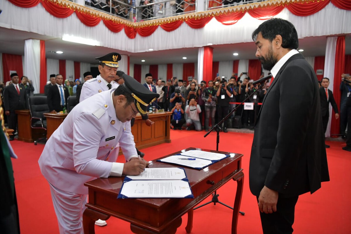 Banda Aceh | Tubinnews.com – Gubernur Aceh Muzakir Manaf atau Mualem resmi melantik H. Zulkifli H. Adam dan Drs. Suradji Junus sebagai Wali Kota dan Wakil Wali Kota Sabang dalam rapat paripurna DPRK Sabang, di Kantor DPRK Sabang, pada Sabtu, (14/6/2025).