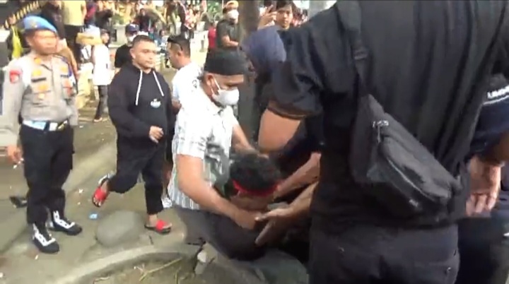 Situasi memanas setelah sejumlah mahasiswa diamankan aparat kepolisian. Bentrokan semakin tak terhindarkan ketika seorang oknum Satpol PP terekam melakukan pemukulan terhadap mahasiswa.