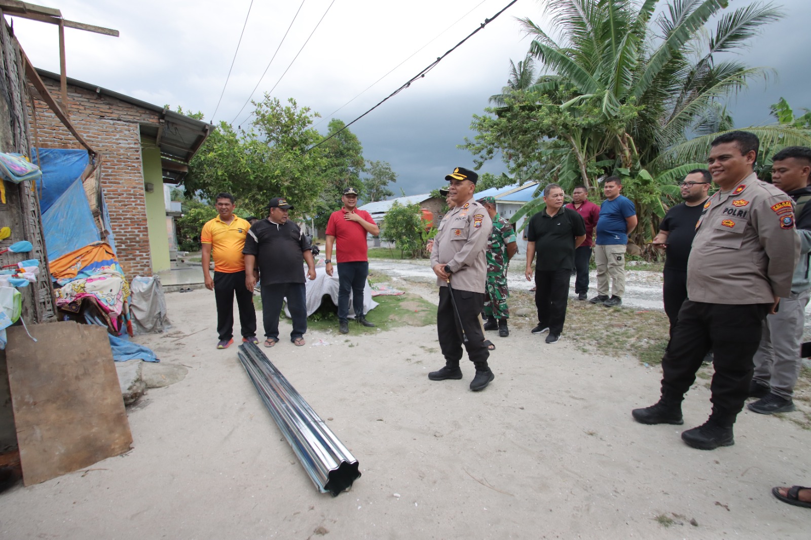 Kapolres Serdang Bedagai AKBP Jhon Sitepu, bersama Wakil Bupati Sergai H. Adlin Umar Yusri Tambunan, memimpin langsung penyerahan bantuan tali asih berupa sembako dan material bangunan.