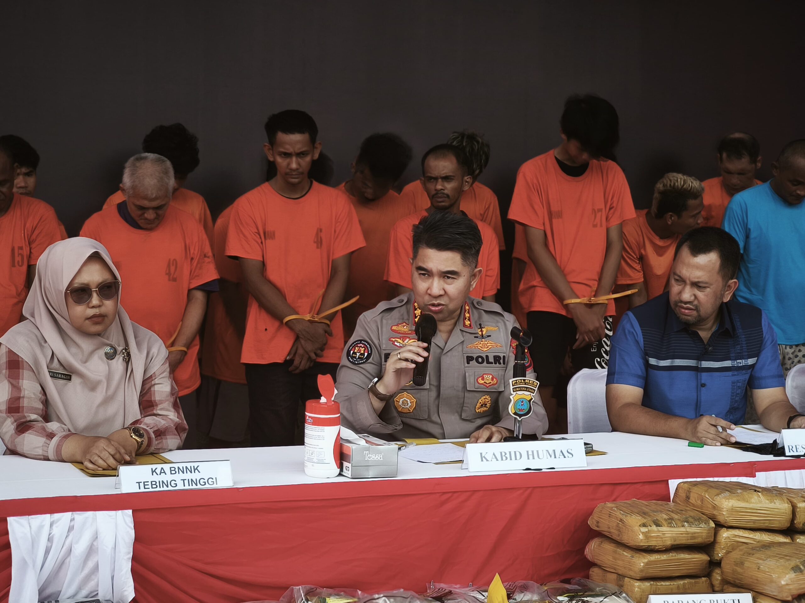 Paparan ini bersama Dirresnarkoba Polda Sumut Kombes Pol Jean Calvijn Simanjuntak, diikuti Kapolresta Deliserdang Kombes Pol Hendria Lesmana, Kapolres Serdangbedagai AKBP Jhon Sitepu, serta Kapolres Tebingtinggi AKBP Simon Paulus Sinulingga.