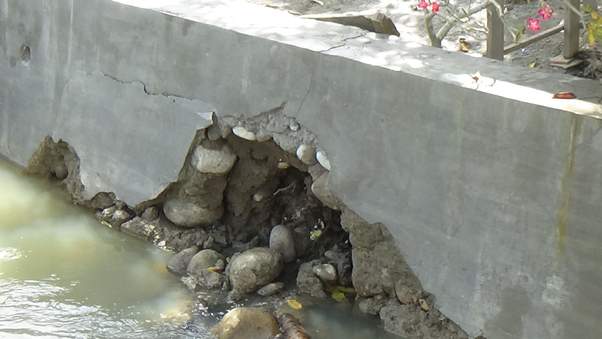 Dari pantauan di lapangan, kondisi proyek tersebut tampak memprihatinkan. Sebagian besar tembok penahan tanah terlihat retak dan rusak meski baru saja selesai dikerjakan. Parahnya lagi, papan proyek yang biasanya memuat informasi anggaran dan pelaksana, sudah tidak terlihat di lokasi.