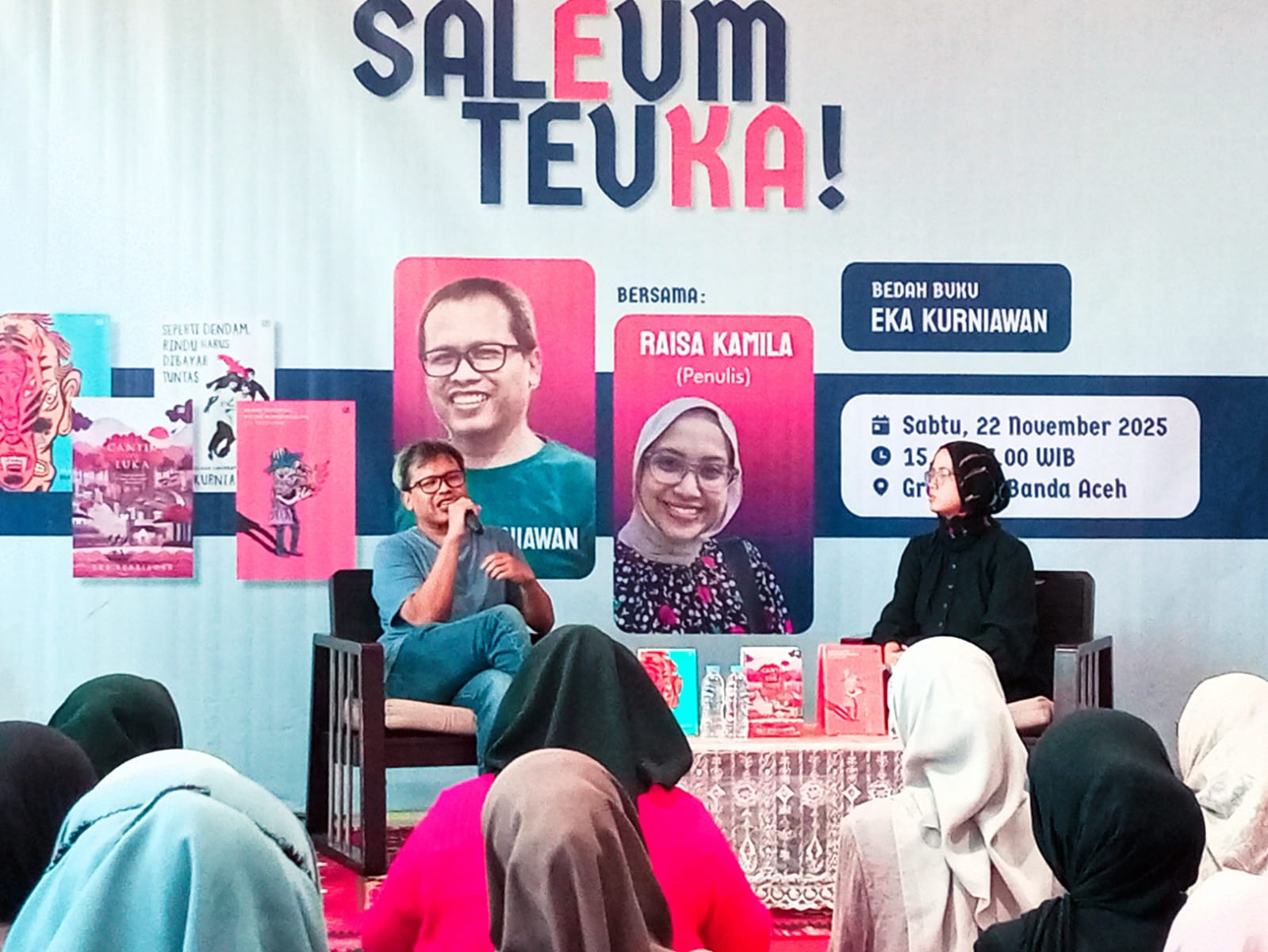 Banda Aceh | TubinNews.Com – Penulis Eka Kurniawan membagikan kisah awal perjalanannya sebagai penulis dalam acara “Saleum Teuka: Bedah Buku Eka Kurniawan” yang digelar di Gramedia Banda Aceh. Dalam kesempatan tersebut, ia mengajak peserta untuk melihat kembali masa-masa awal dirinya menekuni dunia kepenulisan.