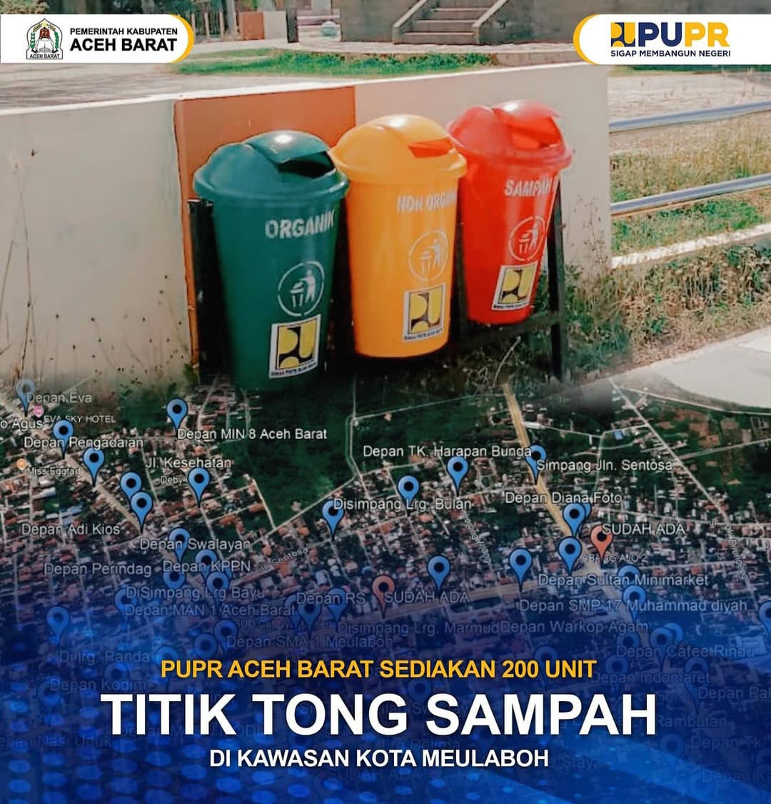 Melalui Dinas Pekerjaan Umum dan Penataan Ruang (PUPR) Aceh Barat menempatkan 200 unit tong sampah terpilah baru di berbagai penjuru kota.