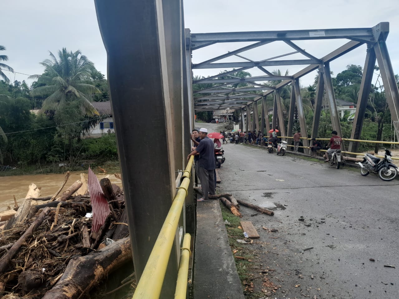 “Sampah-sampah kayu gelondongan yang terbawa aliran sungai pada Selasa dan Rabu, yang tersangkut di jembatan menyebabkan aliran sungai tersumbat, dan harus segera kita bersihkan untuk menghindari meluapnya sungai ke pemukiman penduduk,” ujarnya