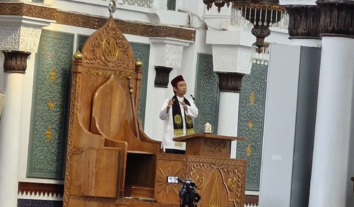 Ustadz Abdul Somad menyampaikan tausyiah pada peringatan 21 tahun musibah Gempa dan Tsunami Aceh 2004 di Masjid Raya Baiturrahman, Banda Aceh, Jumat (24/12/2025). (Dok. TubinNews).