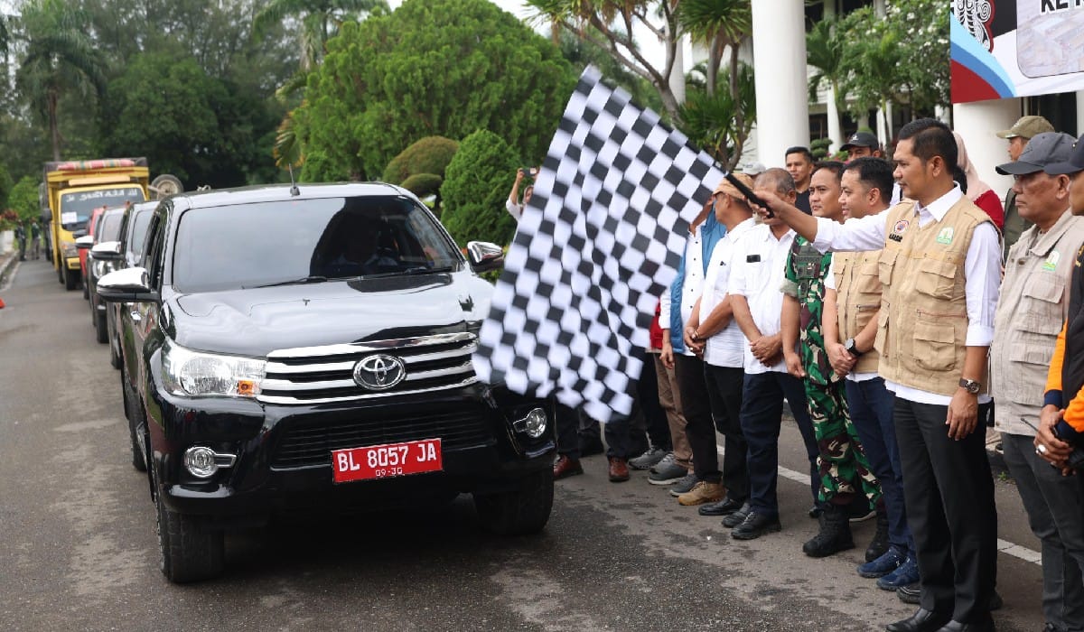 Usai apel pelepasan, relawan ASN bersama kendaraan dan logistik bantuan diberangkatkan menuju berbagai daerah terdampak bencana hidrometeorologi di Aceh.