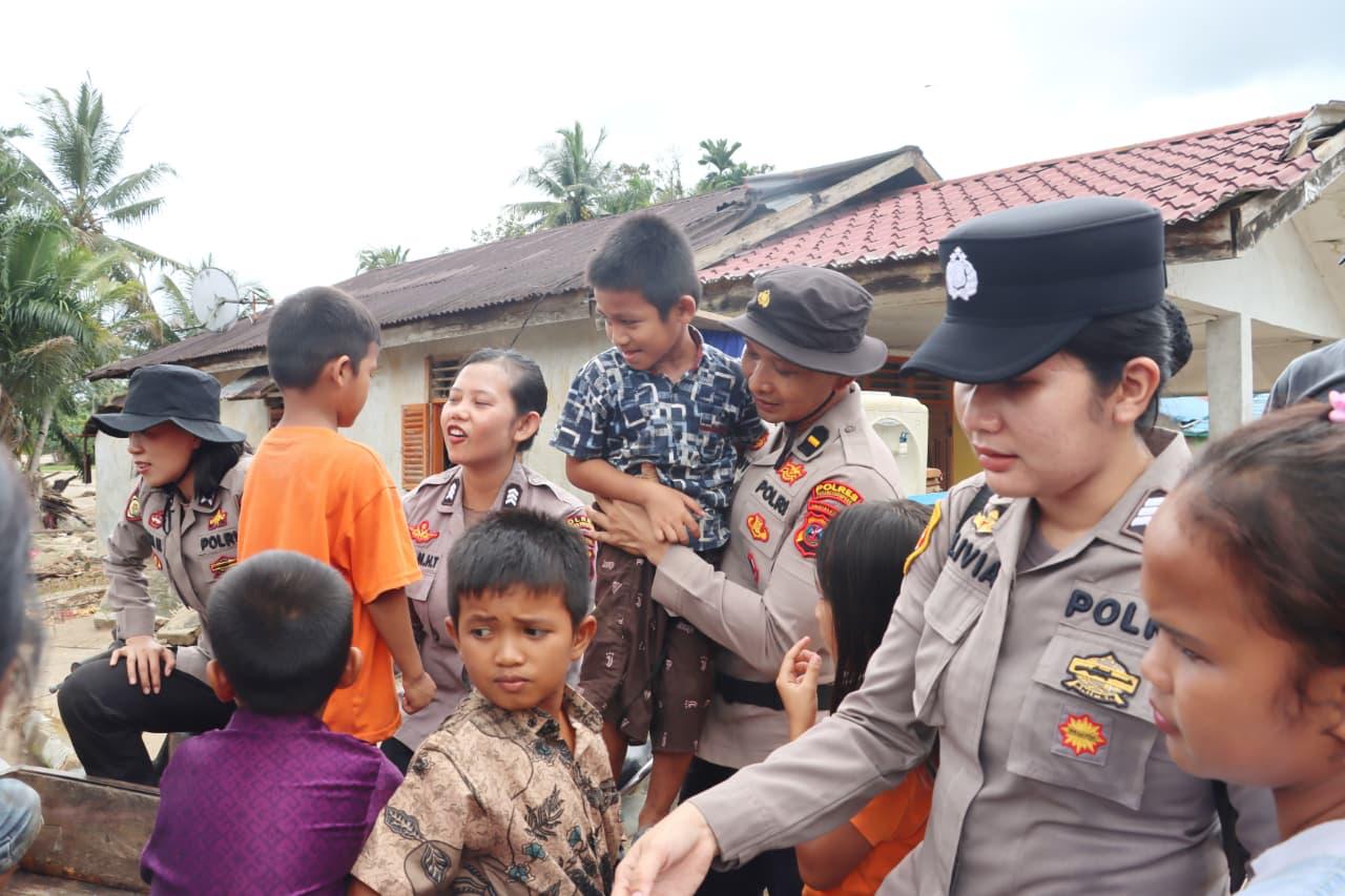 Padangsidimpuan | TubinNews.com – Polisi Wanita (Polwan) Polres Padangsidimpuan melaksanakan kegiatan trauma healing bagi anak-anak terdampak bencana alam di Desa Batuhoring dan Desa Huta Godang, Kecamatan Batang Toru, Kabupaten Tapanuli Selatan, Minggu (7/12/2025).