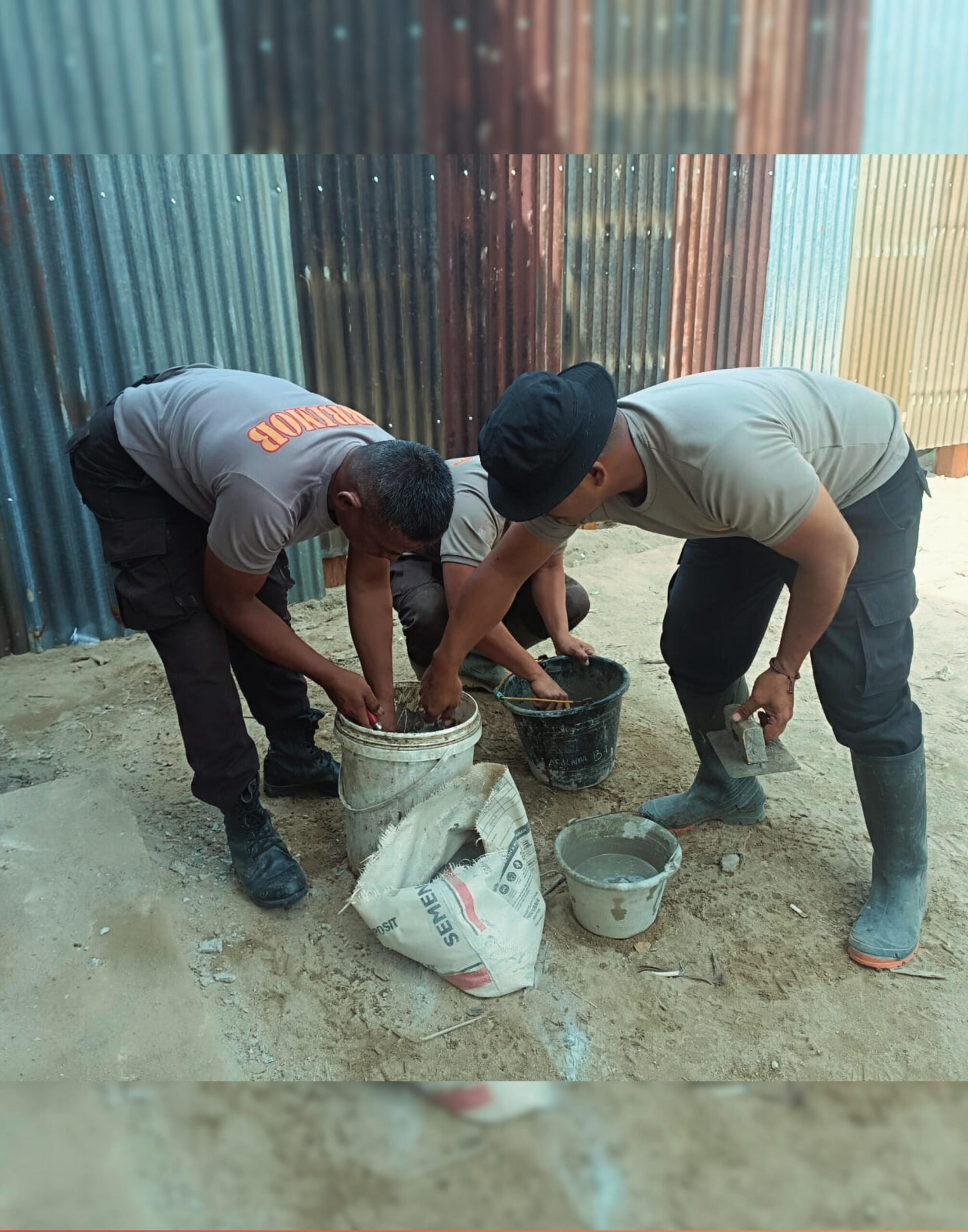 Dipimpin oleh Danton I Kompi 1 Batalyon C, IPTU Roy Sandri Pohan, S.H., personel Brimob melaksanakan finishing plester dinding rumah swadaya ke-11, sekaligus melakukan pembersihan sisa material di sekitar lokasi pembangunan agar lingkungan tetap tertata dan aman.