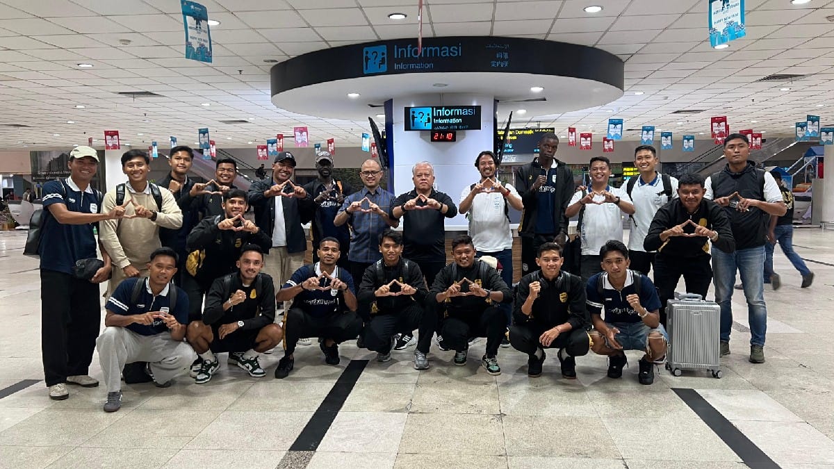 Kajati Sumut, Dr. Harli Siregar, SH., M.Hum menyambut langsung kedatangan Tim Adhyaksa FC beserta jajaran official di Bandara Internasional Kualanamu, Deli Serdang, Kamis (9/1/2026). (Foto: Kejaksaan).