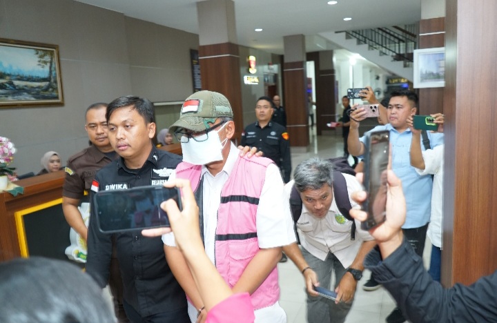 Medan | Tubinnews.com // Enda Simakasura Ketaren tertunduk tunduk malu usai dikenakan jaket merah jambu bertuliskan tahanan korupsi Kejaksaan Tinggi Sumatera Utara setelah berstatus tersangka korupsi, Selasa (27/1/2026).