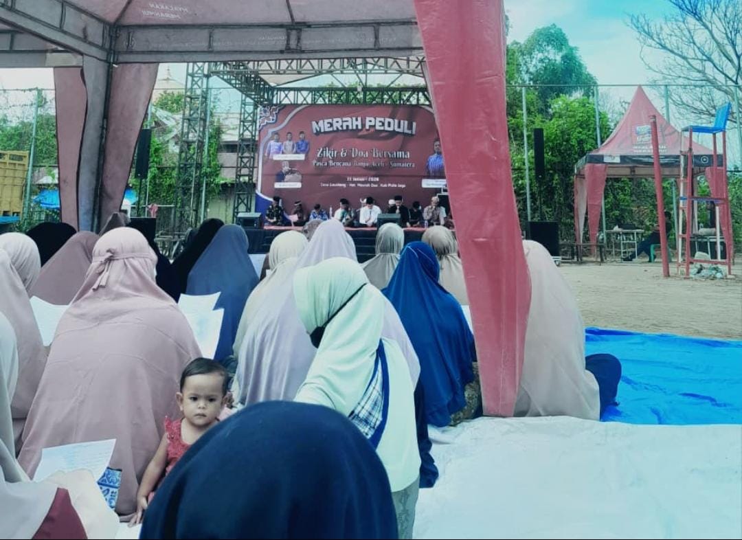 Pidie Jaya | TubinNews.com — Masyarakat Desa Gampong Geunteng, Kecamatan Meurah Dua, Kabupaten Pidie Jaya, menyelenggarakan kegiatan zikir dan doa bersama pascabencana yang berlangsung di halaman lapangan voli desa setempat, Jumat (30/1/2026).