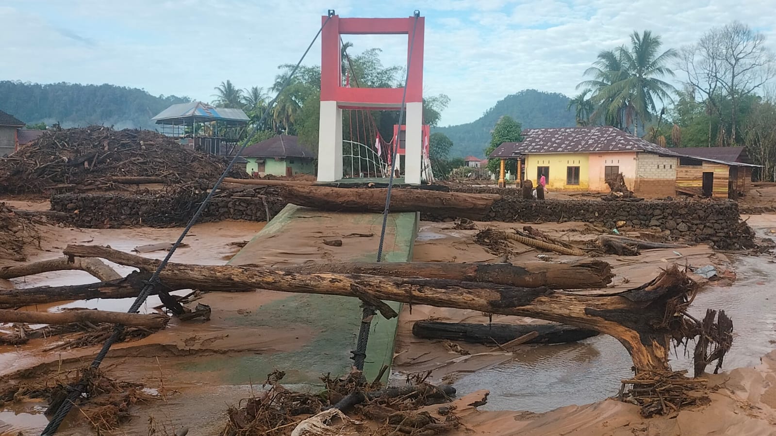 Tapanuli Tengah | Tubinnews.com — Akibat curah hujan yang tinggi, Jembatan Gantung Perintis Garuda mengalami kerusakan sedang namun tidak sampai terputus di Kelurahan Tukka, Kecamatan Tukka, Kabupaten Tapanuli Tengah, Kamis (12/2/2026).