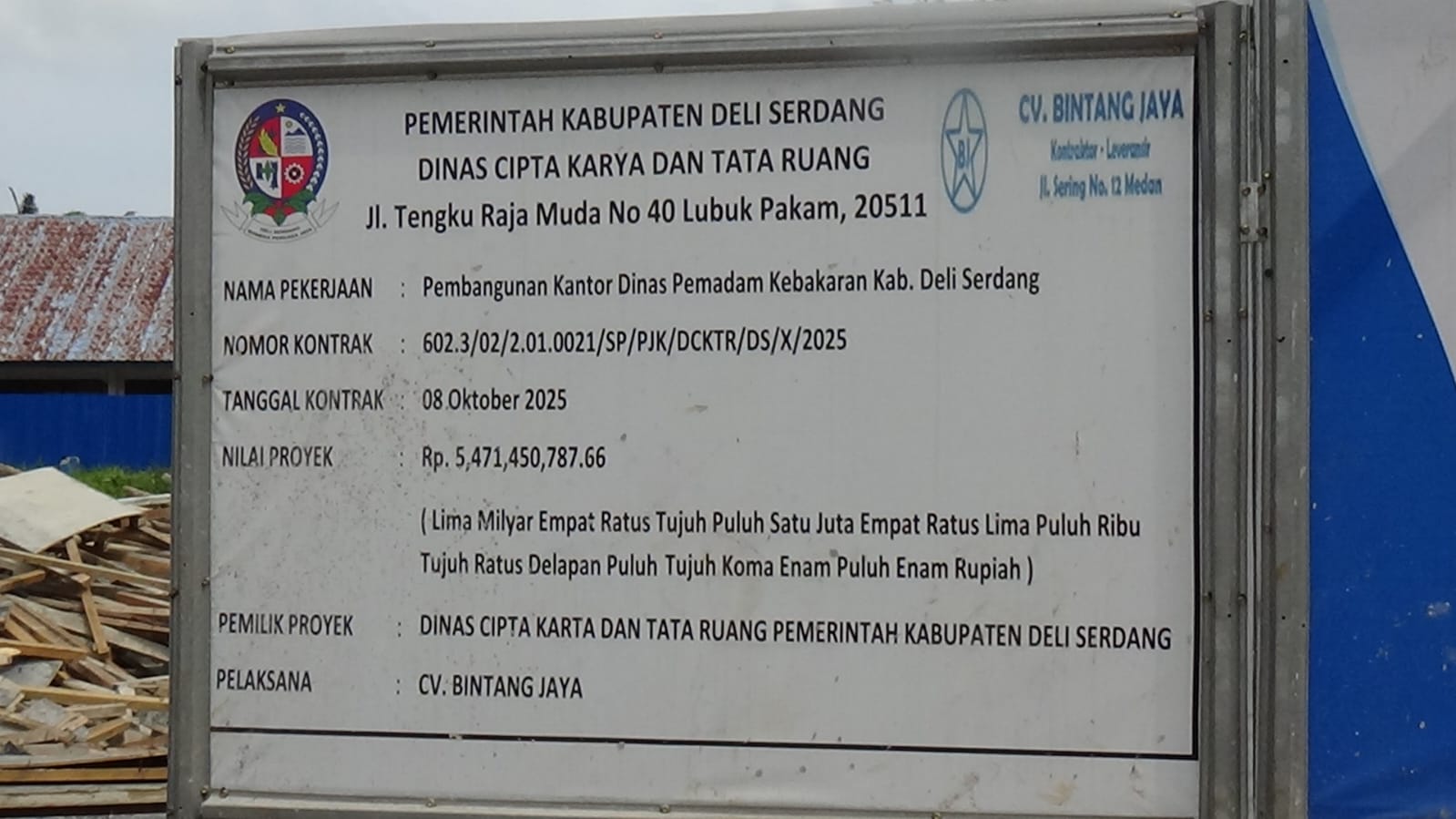 Deli Serdang| TubinNews.com – Sorotan publik terhadap pelaksanaan megaproyek pembangunan gedung di sejumlah titik wilayah Kabupaten Deli Serdang, khususnya proyek pembangunan Kantor Dinas Pemadam Kebakaran (Damkar), akhirnya mendapat tanggapan dari Dinas Cipta Karya dan Tata Ruang Kabupaten Deli Serdang.