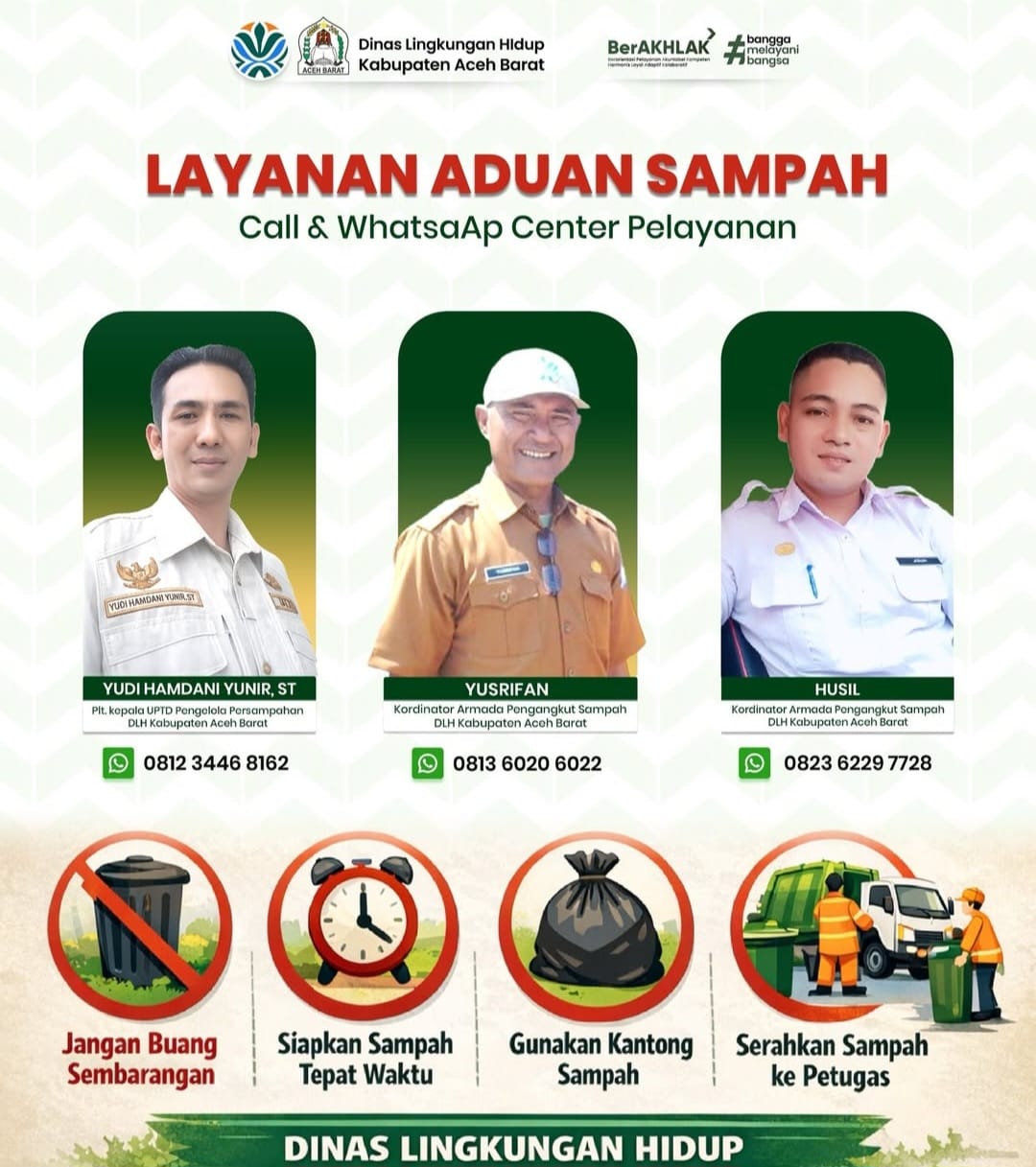 Disamping itu, kata dia, apabila sampah belum terangkut dan ada kendala, masyarakat dapat menghubungi pak Husil (0823-6229-7728), Ivan (0813-6020-6022) dan Ka.UPTD pak Yudi (0812-3446-8162)