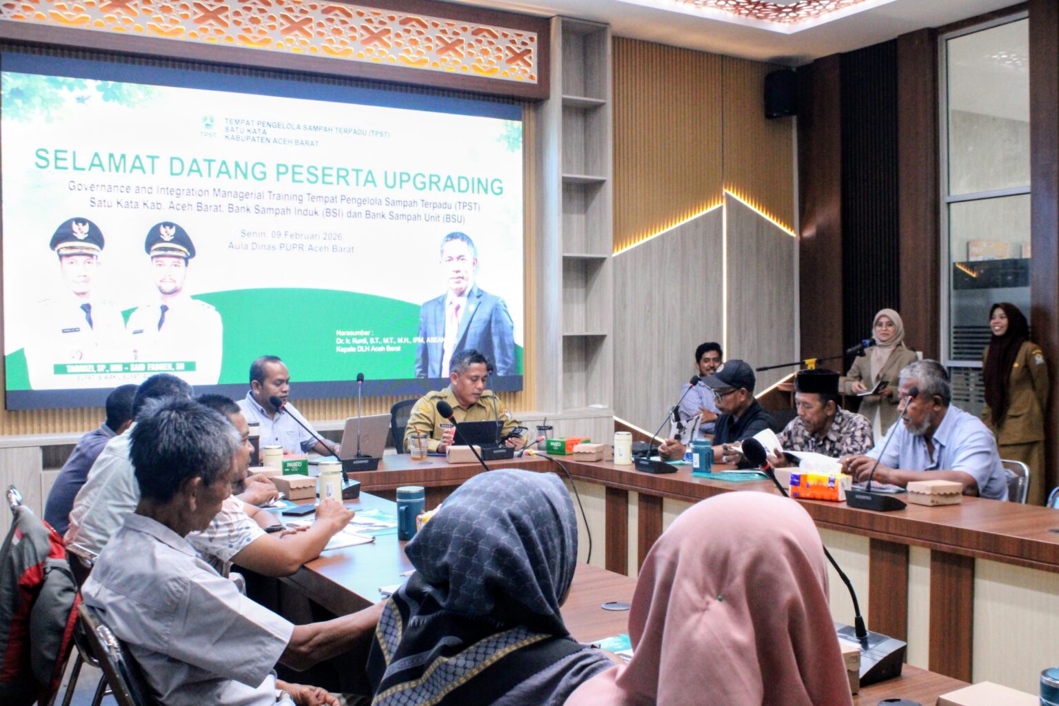 Aceh Barat|| Tubinnews.com- Tempat Pengelolaan Sampah Terpadu (TPST) Satu Kata Kabupaten Aceh Barat menggelar kegiatan Governance and Integration Managerial Training bersama Bank Sampah Induk (BSI) dan Bank Sampah Unit (BSU), Senin (9/2/2026) di Aula Dinas PUPR Aceh Barat.