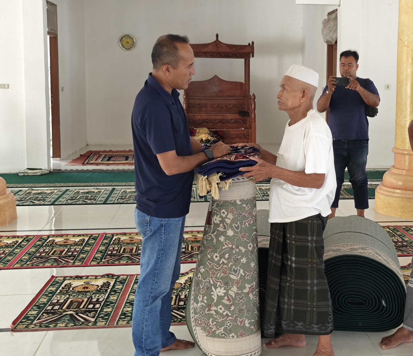 Nagan Raya ||Tubinnews.com-Satuan Reserse Kriminal (Reskrim) Polres Nagan Raya menyerahkan bantuan berupa ambal dan sajadah imam untuk Masjid Baitul Makarramah Alue Wakie, Kecamatan Darul Makmur, Kabupaten Nagan Raya.