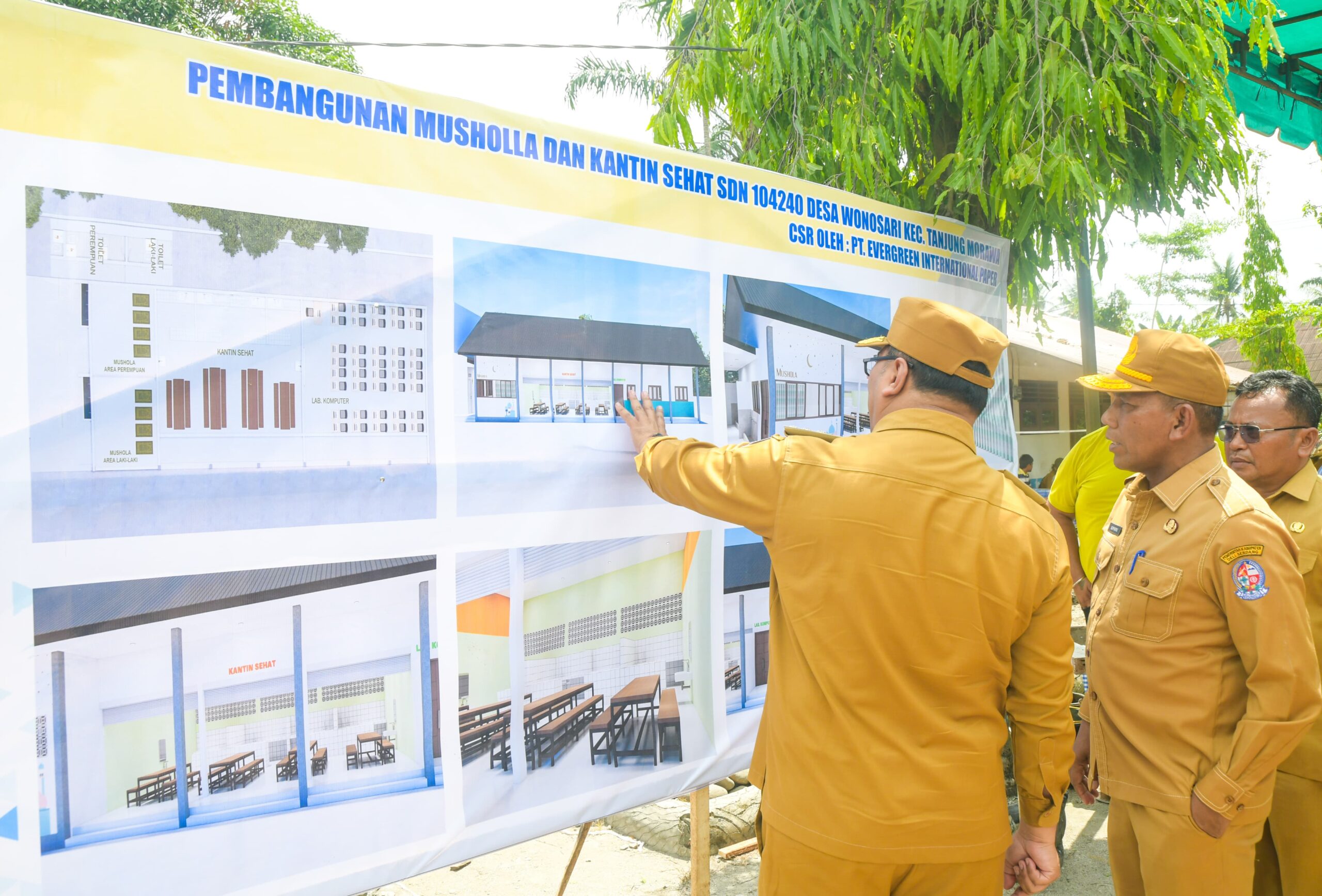 Peletakan batu pertama yang dilakukan bersama Wakil Bupati, Lom Lom Suwondo SS ini bagian dari upaya peningkatan kualitas sarana dan prasarana pendidikan. Pembangunan musala dan kantin sehat tersebut didukung melalui program Corporate Social Responsibility (CSR) PT Evergreen International Paper Tanjung Morawa.