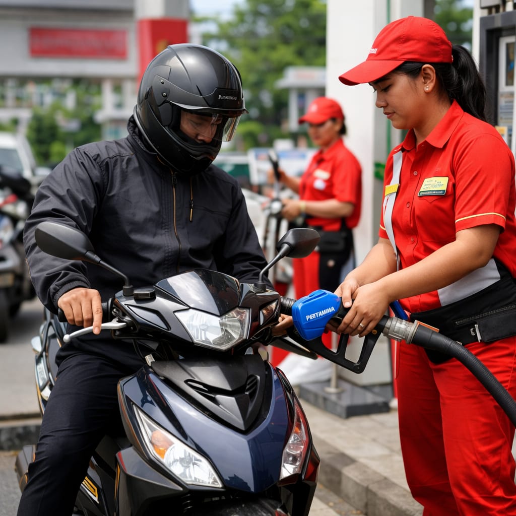 Ilustrasi pengisian BBM di SPBU Pertamina. (Foto: ilustrasi dibuat menggunakan ChatGPT)