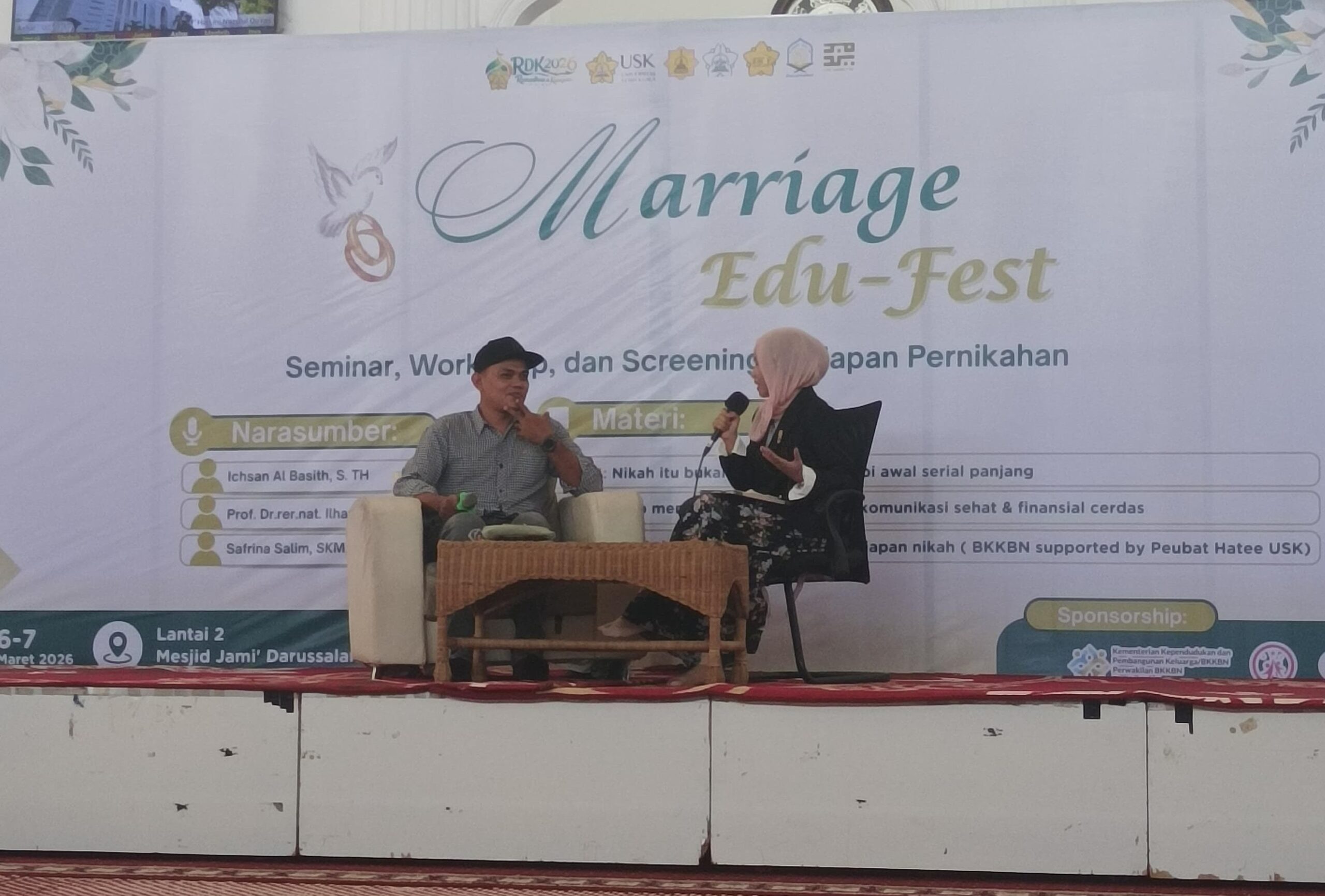 Sementara itu, Prof. Ilham Maulana dalam materinya membahas pentingnya komunikasi yang sehat dalam hubungan serta perencanaan finansial yang matang sebelum menikah.