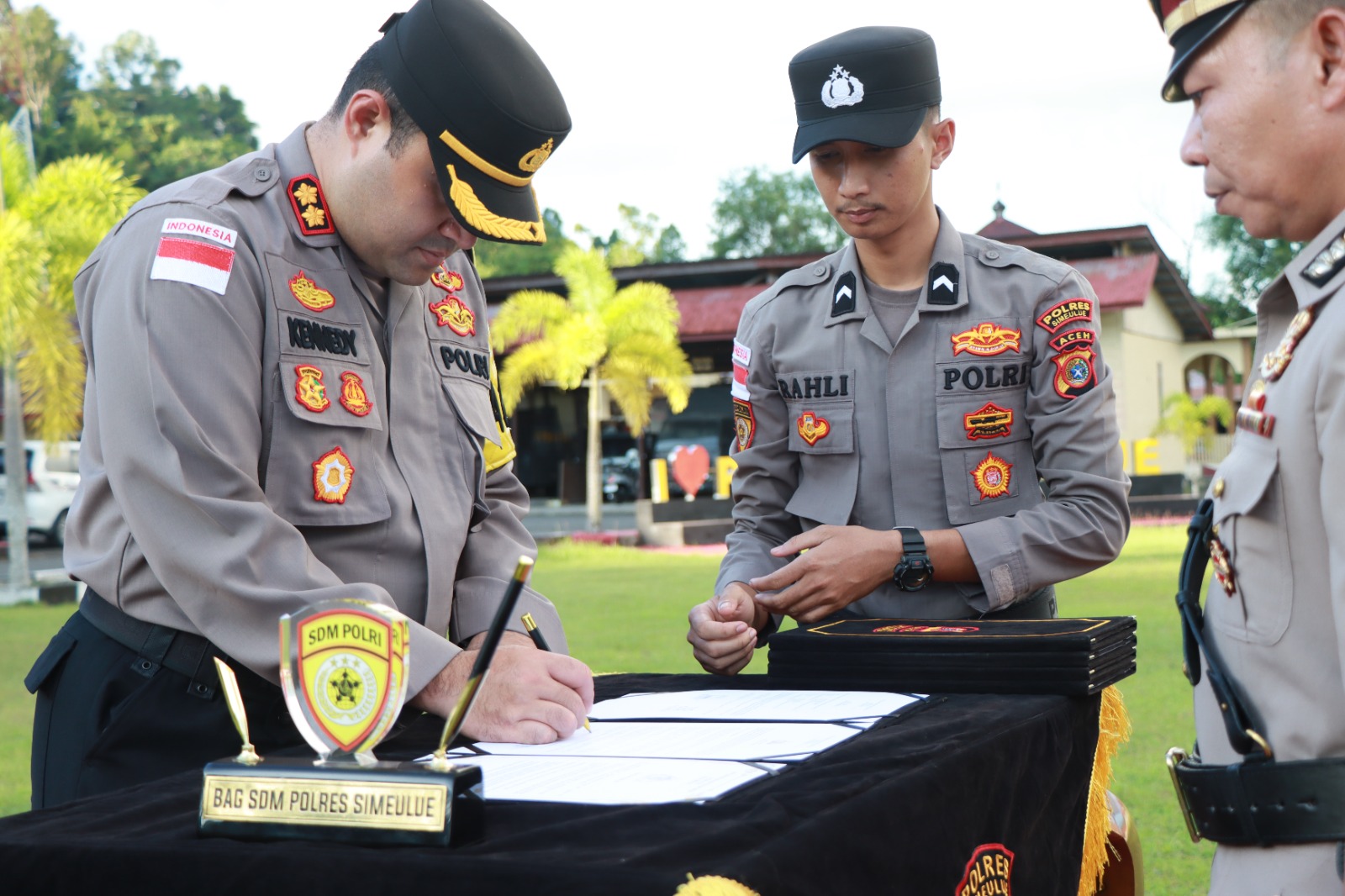 Adapun pejabat yang melaksanakan serah terima jabatan dalam kegiatan tersebut meliputi jabatan Kasat Lantas, Kasat Reskrim, Kasat Resnarkoba, Kapolsek Teluk Dalam, serta penyerahan jabatan Kasikum Polres Simeulue. Kegiatan ini dilaksanakan berdasarkan Surat Perintah Kapolres Simeulue Nomor Sprin/261/III/KEP.3./2026 tanggal 12 Maret 2026.