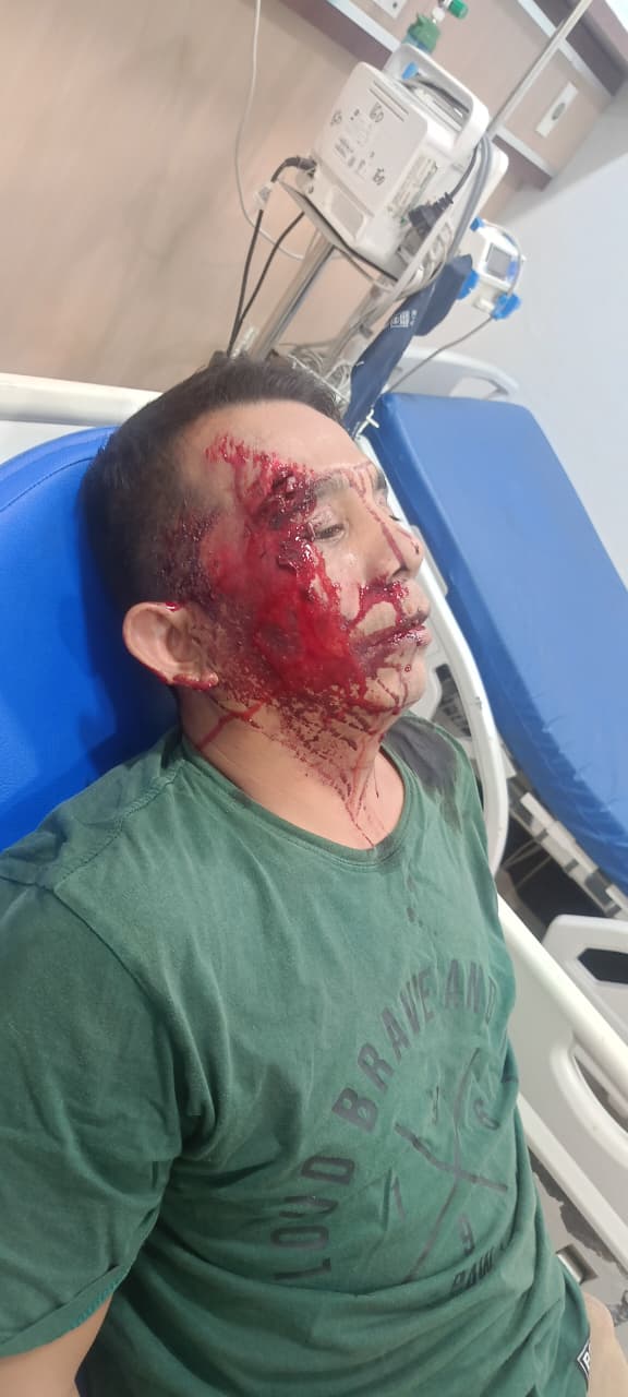 Korban mengalami luka serius di bagian wajah akibat serangan brutal pelaku. Dari foto yang beredar di gruop masyarakat, kondisi korban tampak mengenaskan dengan wajah berlumuran darah saat mendapatkan penanganan medis di rumah sakit.