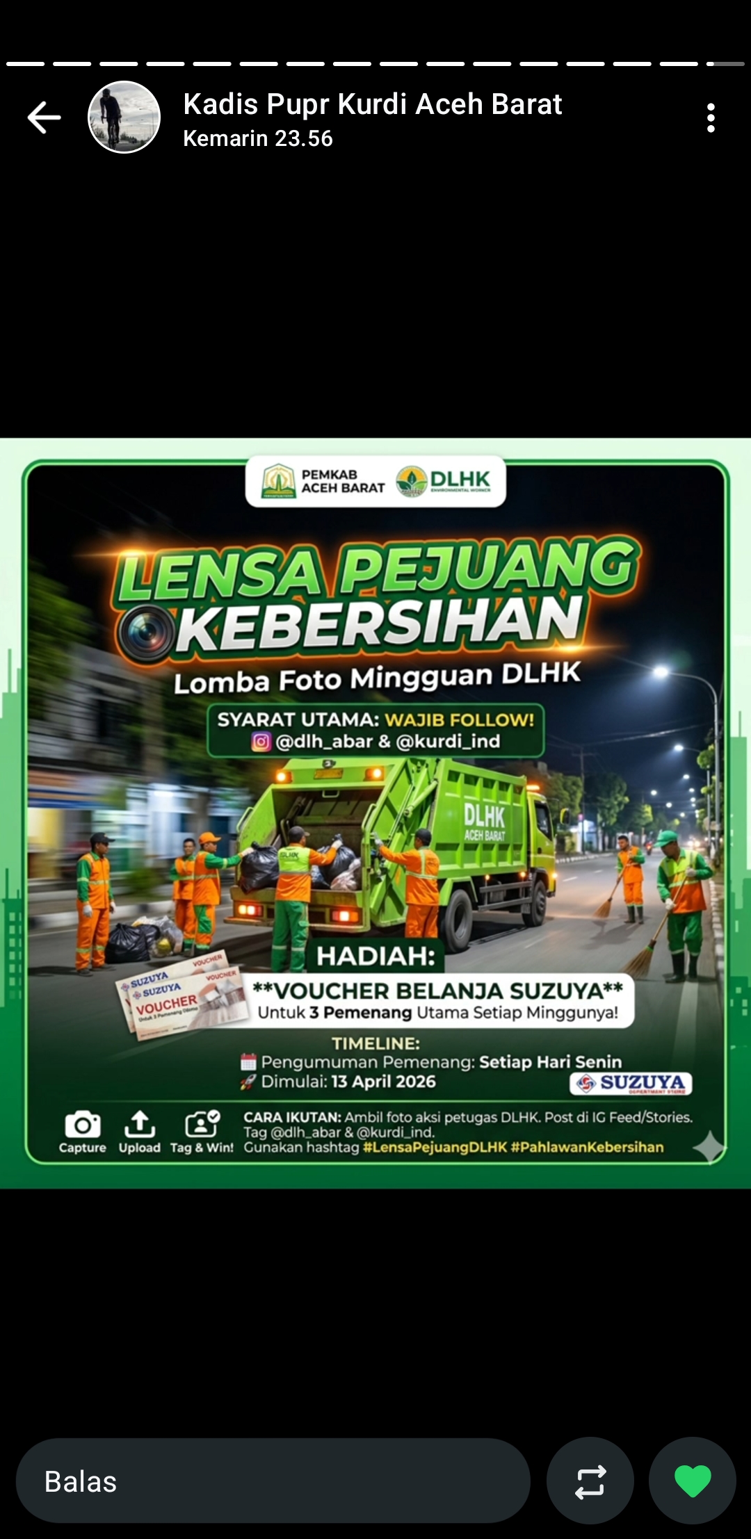 Melalui lomba ini, masyarakat diajak untuk lebih peduli terhadap lingkungan sekaligus mengapresiasi para pejuang kebersihan di Aceh Barat.