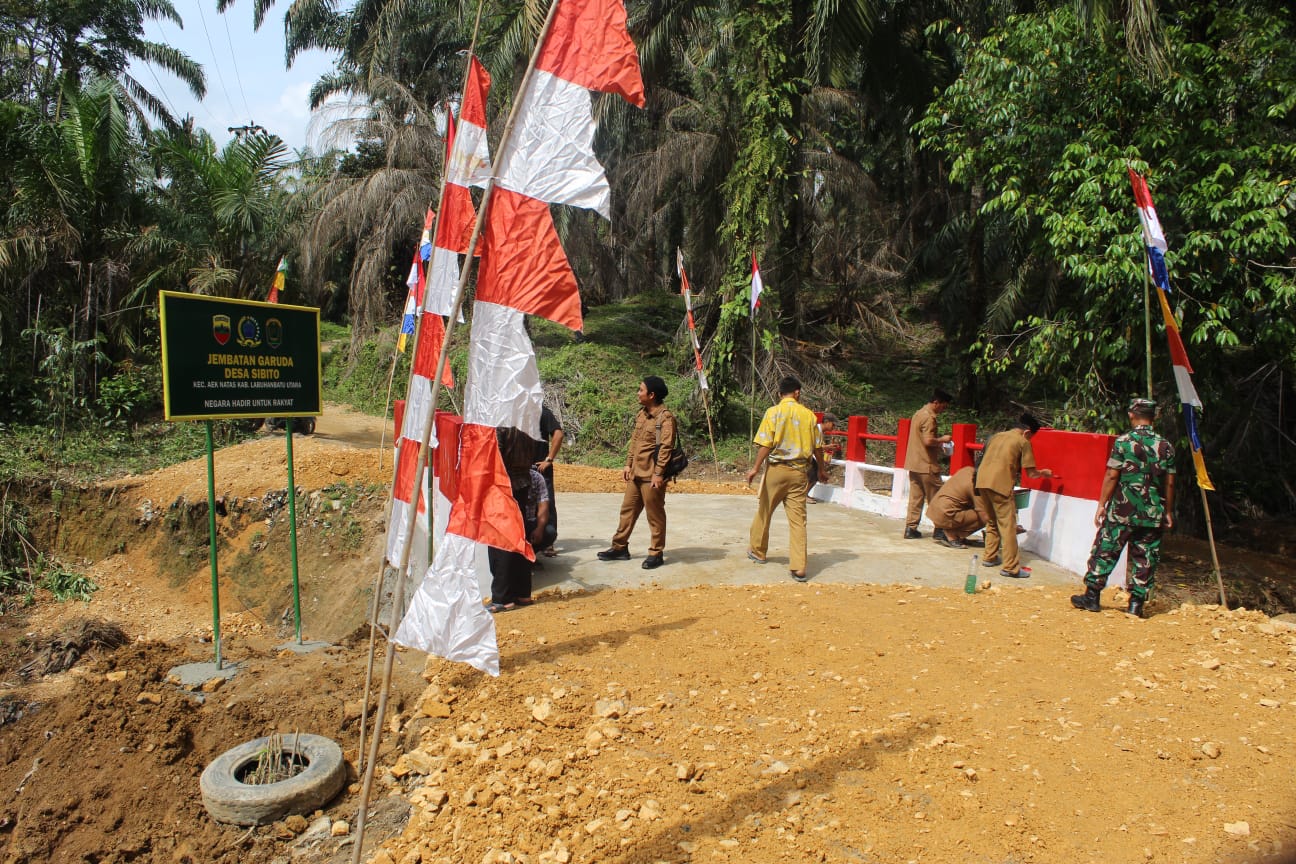 Labura | Tubinnews.com – Kodim 0209/Labuhan batu menuntaskan pembangunan Jembatan Aramco di Desa Sibito, Kecamatan Aek Natas, Kabupaten Labuhanbatu Utara, Rabu (22/4/2026). Pembangunan jembatan sepanjang 5,3 meter tersebut telah mencapai progres 100 persen dan kini menjadi akses penghubung Desa Sibito menuju Desa Rombisan.