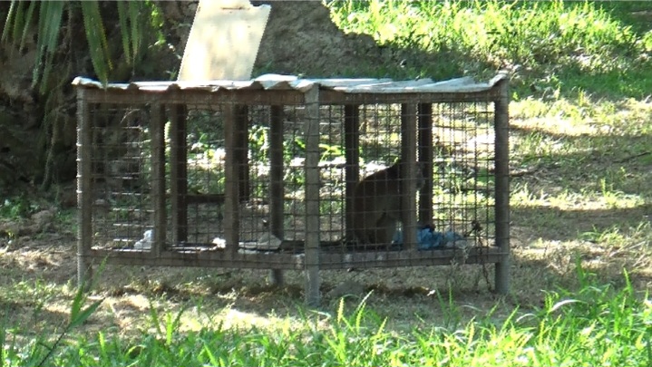 “Kami terima laporan warga dan langsung turun kelokasi untuk melakukan penangkapan dengan persiapan pancingan kandang dan monyet,”Tegas Kasi Pengelamatan dan Evakuasi Erikson.