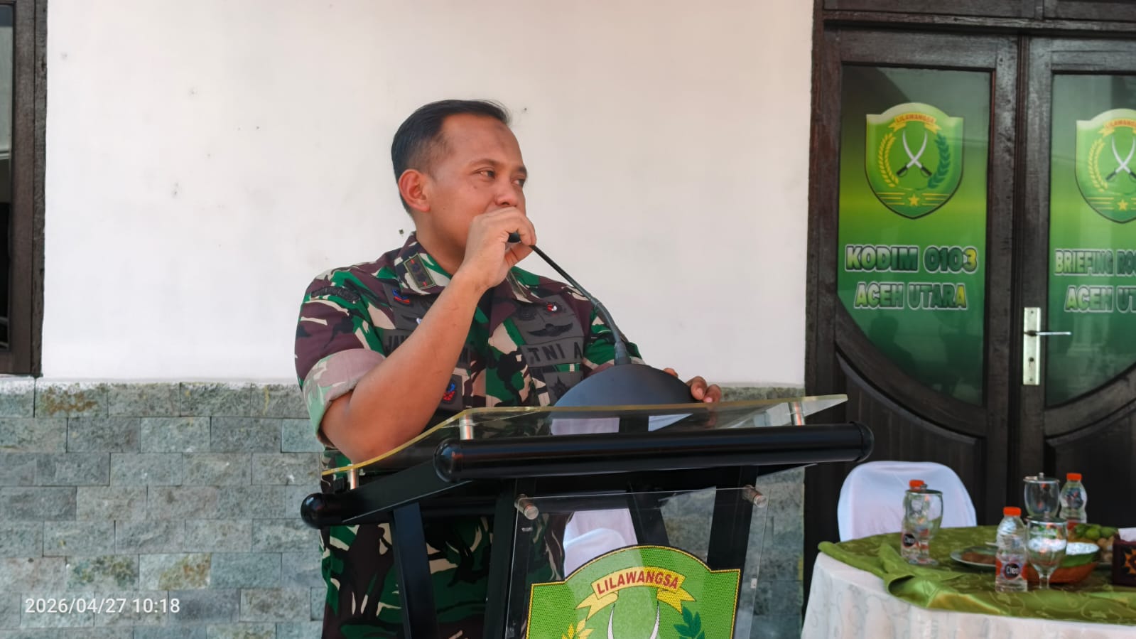 Lhokseumawe | TubinNews.com – Komandan Komando Distrik Militer (Dandim) 0103/Aceh Utara, Letkol Arh Jamal Dani Arifin menyampaikan program pendampingan percepatan pemulihan dan penanganan bencana banjir Aceh – Sumut di wilayah kerja. Dandim menyampaikan sejumlah program yang sudah dilaksanakan dalam gelaran “ngopi bareng wartawan” di markas Kodim 0103 di Lhokeeumawe, Senin (27/4/2026).