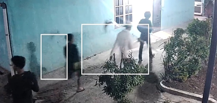 Mereka diduga membawa senjata tajam (sajam) dan bergerak masuk ke dalam gang di depan rumah warga.
